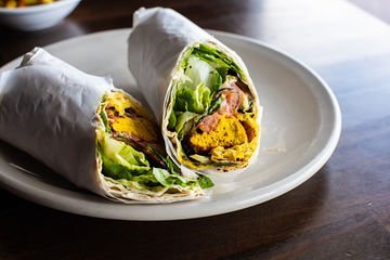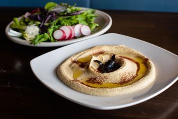 One skewers of grilled ground Beef kabob / ground Chicken kabob Stuffed in pita bread and served with green salad.